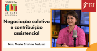 Por TST Notícias No videocast, ministra Maria Cristina Peduzzi fala sobre as fontes de custeio dos sindicatos e defende a negociação coletiva Você sabe a diferença entre contribuição sindical e contribuição assistencial? Para definir os conceitos e tirar dúvidas a respeito de cada uma, a ministra do Tribunal Superior do Trabalho Maria Cristina Peduzzi participa do videocast “Vozes da CLT: …