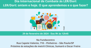Por FUNDACENTRO Clique aqui e acesse o evento online Onde estávamos quando as LER/Dort eclodiam pelo país e o que aprendemos com a luta dos/as trabalhadores/as?”. Essa questão estará em pauta no evento “LER/Dort: ontem e hoje. O que aprendemos e o que fazer?”, que será realizado em 29 de fevereiro, das 9h às 12h45, no prédio da Fundacentro, em …