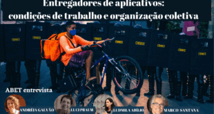 Por Bruna Gomes | Equipe ABET Submetidos a extensas jornadas de trabalho, baixa remuneração e desproteção social, os entregadores de aplicativos têm se sobressaído no atual contexto de crise sanitária enquanto uma das categorias de trabalhadores mais explorada. A realidade dos trabalhadores de aplicativos é a cara das novas relações de trabalho que se estabelecem no país a partir da …