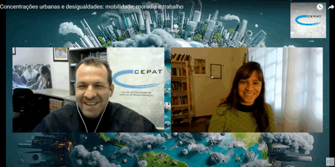 No último dia 10 de agosto, foi a convidada da série de debates Questões do Antropoceno para discorrer sobre o tema Concentrações urbanas e desigualdades: mobilidade, moradia e trabalho. A iniciativa do CEPAT conta com a parceria e o apoio do Instituto Humanitas Unisinos – IHU, do Serviço Amazônico de Ação, Reflexão e Educação Socioambiental – SARES, do Departamento de Ciências Sociais da Universidade Estadual de Maringá – UEM e do Conselho Nacional do Laicato do Brasil – CNLB.