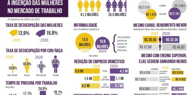 Essa crise sanitária, econômica e social reforçou a distância salarial entre homens e mulheres, em 2020, elas seguiram ganhando menos, mesmo quando ocupavam cargos de gerência ou direção, para elas a hora paga foi de R$ 32,35 e para eles, de R$ 45,83 ou com a mesma escolaridade: elas ganhavam em média R$ 3.910 e eles, R$ 4.910.Para a juventude feminina, este cenário de pandemia trouxe a desilusão em relação ao futuro e em muitos casos, o abandono dos estudos e da qualificação. Os efeitos para o país foram desastrosos e se essa situação permanecer em 2021, o desenvolvimento futuro do país estará seriamente comprometido.”
