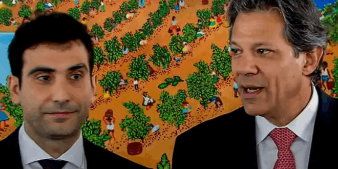 Gabriel Galípolo, diretor do BC, indicado para presidir o banco, e o ministro da Fazenda, Fernando Haddad. Foto: Frame Emar Nobre/Canal Gov