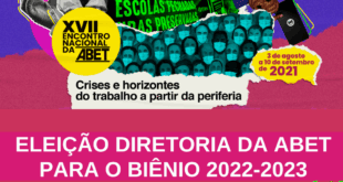 Leia Mais »A ABET tem nova diretoria e novo grupo de apoio para o biênio 2022-23. Foi eleita, no dia 10 de setembro, durante a Assembléia Ordinária da ABET, a nova diretoria que será presidida pela profª Drª Renata Dutra (UnB). Confira abaixo a composição da diretoria que tomará posse em 1o. de janeiro de 2022 e a Carta Programa. Confira também …