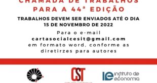 Por Carta Social e do Trabalho (CST) A Carta Social e do Trabalho (CST) é uma publicação do Centro de Estudos Sindicais e de Economia do Trabalho (CESIT), vigente desde 2005, com o objetivo de promover debates de temas relevantes acerca das questões sociais e do mundo do trabalho, na mesma perspectiva crítica característica do Instituto de Economia da Unicamp. …