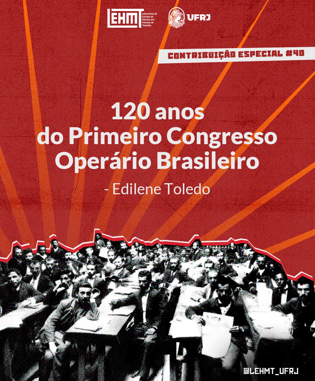 Confira o texto no site do Laboratório de Estudos de Histórias do Mundo do Trabalho (LEHMT-UFRJ), disponível em https://lehmt.org/ce-40-para-a-uniao-do-proletariado-brasileiro-o-primeiro-congresso-operario-brasileiro-1906/