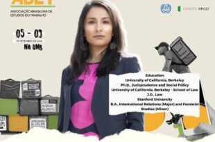 Por Associação Brasileira de Estudos do Trabalho Está confirmada a presença de Veena Dubal, professora de direito na Universidade da Califórnia, Hastings College of Law e pesquisadora em direito, tecnologia e trabalho precário, na abertura do XVIII Encontro Nacional da ABET. A professora Dubal foi citada pela Suprema Corte da Califórnia e sua pesquisa foi publicada em revistas jurídicas de …
