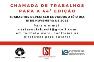 Por Carta Social e do Trabalho (CST) A Carta Social e do Trabalho (CST) é uma publicação do Centro de Estudos Sindicais e de Economia do Trabalho (CESIT), vigente desde 2005, com o objetivo de promover debates de temas relevantes acerca das questões sociais e do mundo do trabalho, na mesma perspectiva crítica característica do Instituto de Economia da Unicamp. …