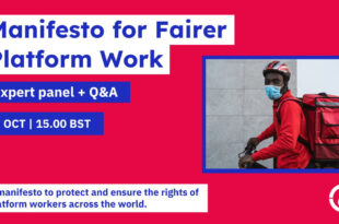 Por Fairwork Em antecipação ao Encontro de Peritos em Trabalho Decente na Economia da Plataforma da Organização Internacional do Trabalho – que será realizado em Genebra de 10 a 14 de outubro – será lançado um “Manifesto para um Trabalho de Plataforma mais Justo” para proteger e garantir os direitos dos trabalhadores da plataforma em todo o mundo. O documento …
