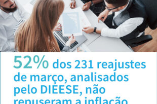 Por Departamento Intersindical de Estatísticas e Estudos Socioeconômicos Os resultados das negociações de março, com base nos instrumentos coletivos (acordos e convenções coletivas) registrados no Mediador até começo de abril, indicam a manutenção do alto patamar de reajustes abaixo da infl ação observado em fevereiro. Cerca de 52% dos 231 reajustes de março, analisados pelo DIEESE, não alcançaram a inflação …