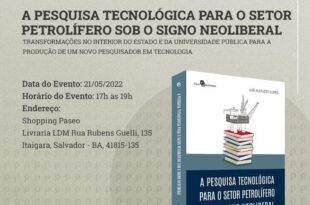 Por Luís Augusto Lopes | Paco Editorial Sinopse: O livro A pesquisa tecnológica para o setor petrolífero sob o signo neoliberal aborda a relação entre tecnologia e petróleo, apresentando a crescente produção de tecnologia, ofertada pelas Universidades brasileiras, para o setor petrolífero, e os impactos que esta produção provoca no desenvolvimento de pesquisas e na formação de estudiosos da área. …
