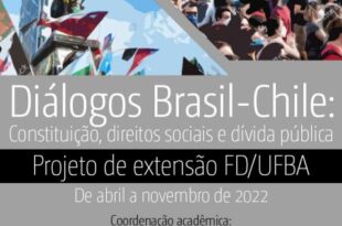Por Universidade Federal da Bahia (UFBA) A Universidade Federal da Bahia (UFBA) promove o curso de extensão “DIÁLOGOS BRASIL-CHILE: Constituição, direitos sociais e dívida pública”, realizado em parceria com o Coletivo Nacional dos Advogados Servidores Públicos (CNASP), o Instituto Lavoro, a Auditoria Cidadã da Dívida (ACD) e a Fundación Sol, sob a coordenação do Professor Lawrence Estivalet de Mello (FD …