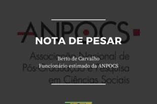 Manifestamos nosso pesar pelo falecimento de Berto de Carvalho, funcionário estimado da Anpocs, que, com seu trabalho, se fez parte da comunidade das ciências sociais brasileiras. Em nome da diretoria e dos/das associados/as da ABET, manifestamos nossa solidariedade aos familiares e aos amigos/as de Berto, bem como aos associados/associadas da Anpocs, nossa entidade parceira, que hoje sofrem com sua perda. …