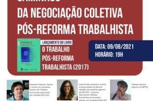 Por DIEESE Conferência on-line gratuita Caminhos da negociação coletiva pós-reforma trabalhista” e lançamento do livro “O trabalho pós-reforma trabalhista (2017)” Data: 09/08/2021Horário: 19 horas Inscrições gratuitas: https://sagu.dieese.org.br/competo/turmas_abertas Participantes: José Dari KreinMarilane TeixeiraPatrícia Pelatieri Cerca de uma hora antes do início da conferência, o link será encaminhado para os inscritos. Mais informações: https://www.facebook.com/events/813032766021886/ | contatoescola@dieese.org.br | (11) 3821-2150, 3821-2155 | (11) …