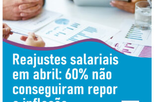 Por DIEESE “Análise do DIEESE revela que 60% dos reajustes salariais de abril ficaram abaixo de 6,94%, inflação acumulada em 12 meses, encerrados em março, segundo o Índice Nacional de Preços ao Consumidor, do Instituto Brasileiro de Geografia e Estatística (INPC-IBGE). Reajustes acima do índice inflacionário foram observados em 17% dos casos; e iguais, em 23%. A variação real média …
