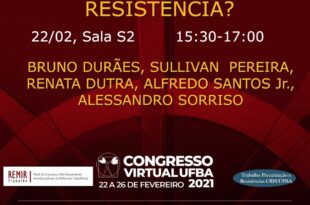Por Congresso Virtual UFBA 2021 Participe da Mesa “Pandemia e Trabalho: quais formas de resistência?”, que acontecerá dia 22/02, às 15:30hrs na sala S2 do Congresso Virtual UFBA 2021. A mesa contará com as participações de Bruno Durães, Sullivan Pereira, Renata Dutra, Alfredo Santos Jr. e Alessandro Sorriso. Clique aqui e participe do evento dia 22/02 às 15:30hrs