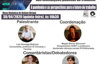 Leia Mais »Mesa virtual 30/04 – O Capitalismo e seus impactos no mercado de trabalho, na regulação e nas instituições públicas do trabalho: A pandemia e as perspectivas para o futuro do trabalho
