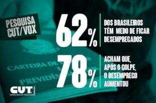 Leia Mais »CUT/Vox: 62% dos trabalhadores brasileiros têm medo de ficar desempregados